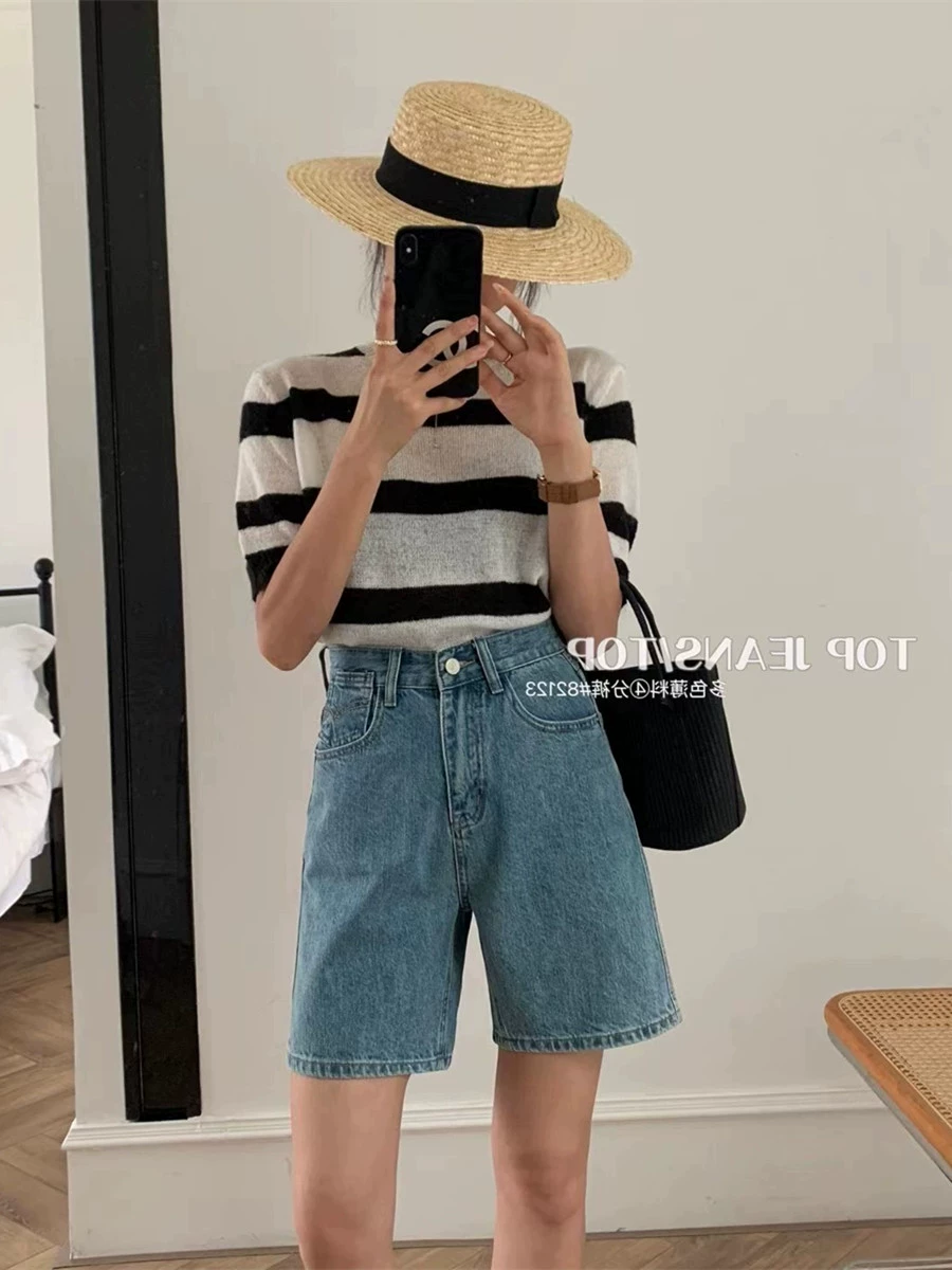 خمسة نقاط عالية الخصر غسل الأزرق غير الرسمي عريض الساق القصيرة