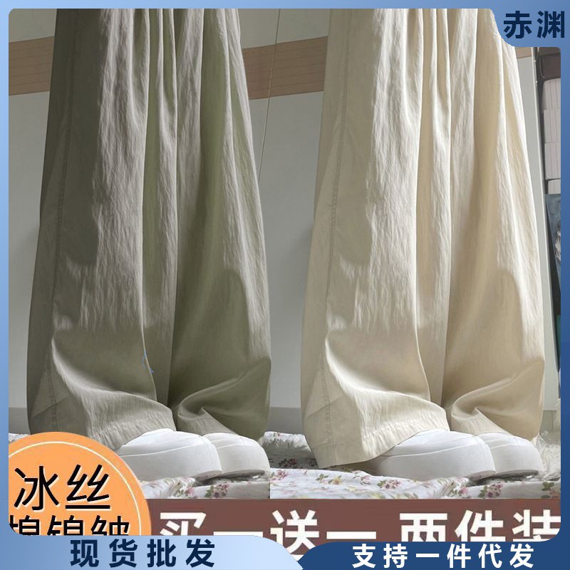 سروال ياماموتو من الحرير الجليدي للفتيات لفصل الربيع والخريف بخصر عالٍ قصير فضفاض بنمط Bf كسول للأطفال متوسط وكبير بنطال بأرجل واسعة