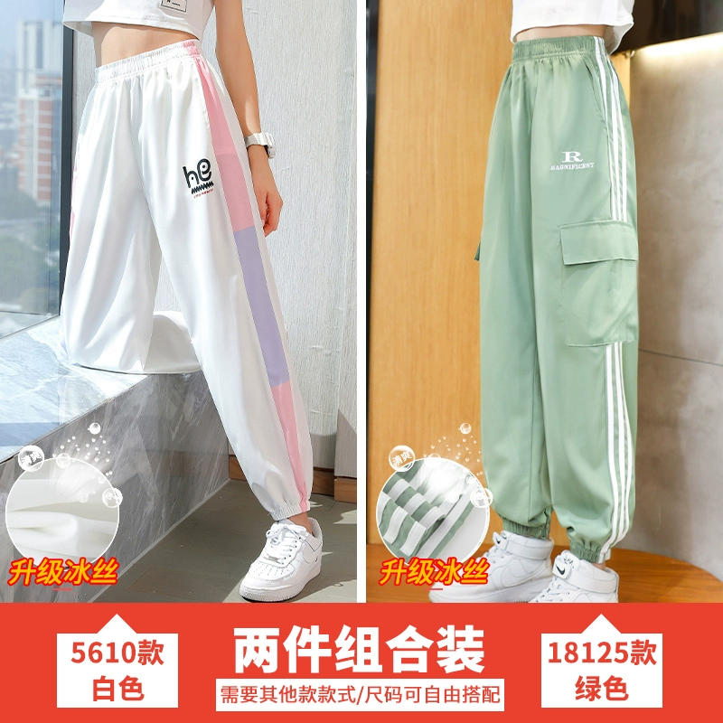 سراويل واسعة الساق من الحرير الجليدي للسيدات صيفية رفيعة 2024 سراويل غير رسمية جديدة فضفاضة ضيقة مستقيمة رائعة للحماية من الشمس