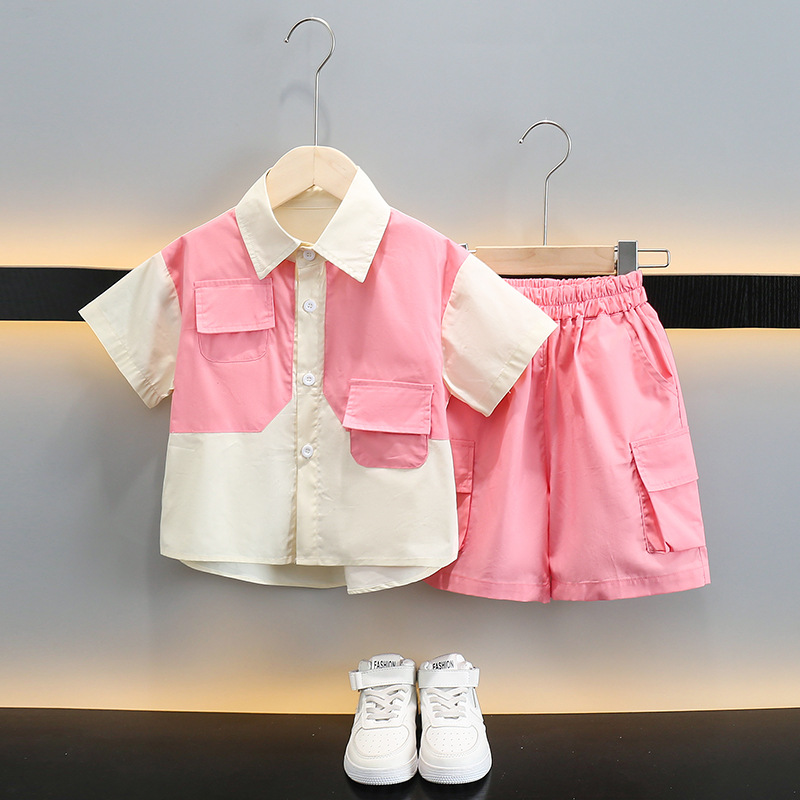 بدلة صيفية للأولاد 2024 قميص Lel صيفي جديد للأطفال غير رسمي بأكمام قصيرة ملابس عمل صيفية