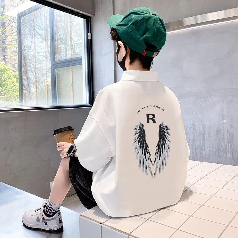 قميص بولو صيفي جديد للأولاد ملابس علوية فضفاضة على الطراز الكوري للأطفال وسيم وعلامة تجارية عصرية على الطراز الكوري بأجنحة R وأكمام قصيرة عصرية