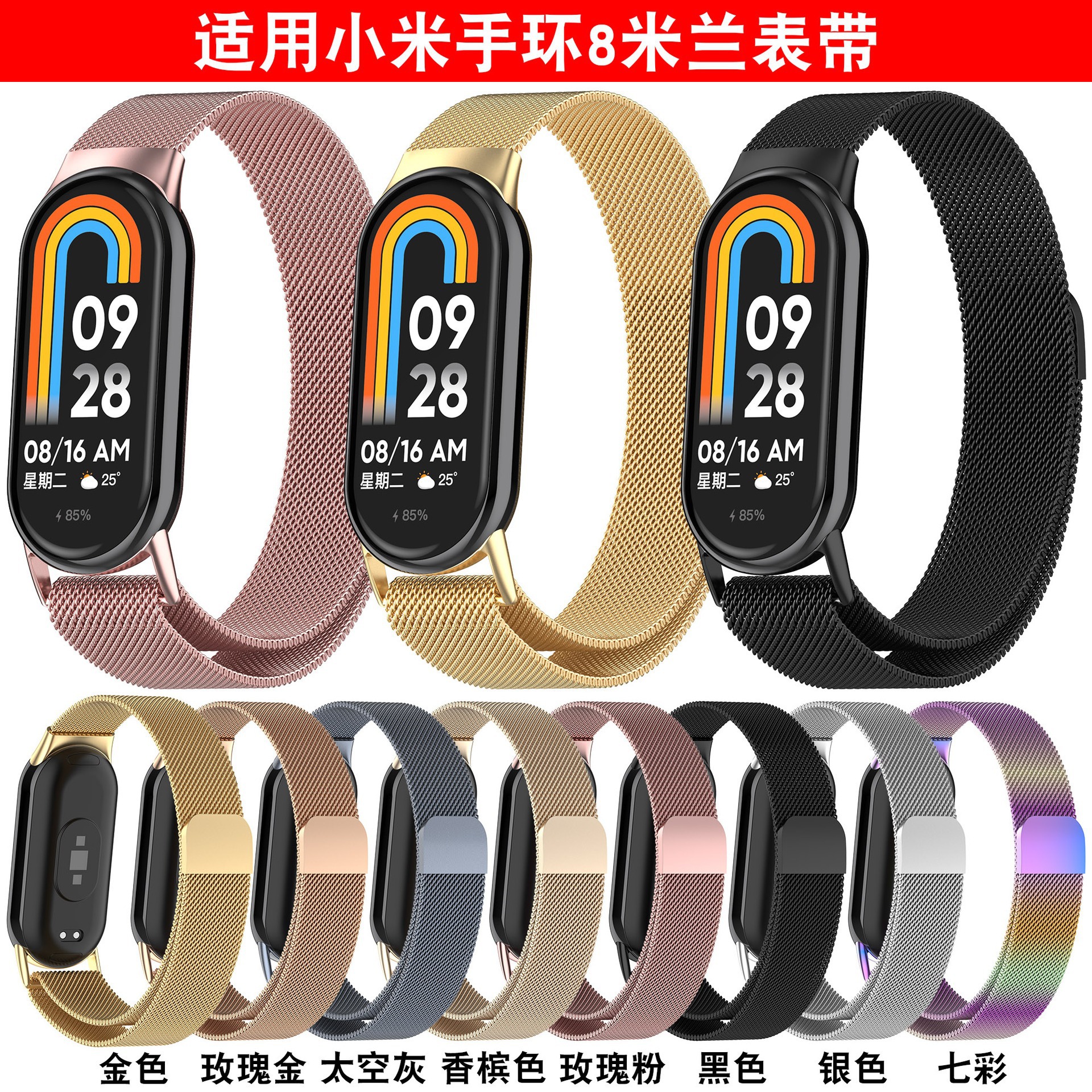 لـ Mi Band 8 Milanese حزام جميل xiaomi Smartband8 حلقة مغناطيسية معدنية من الفولاذ المقاوم للصدأ