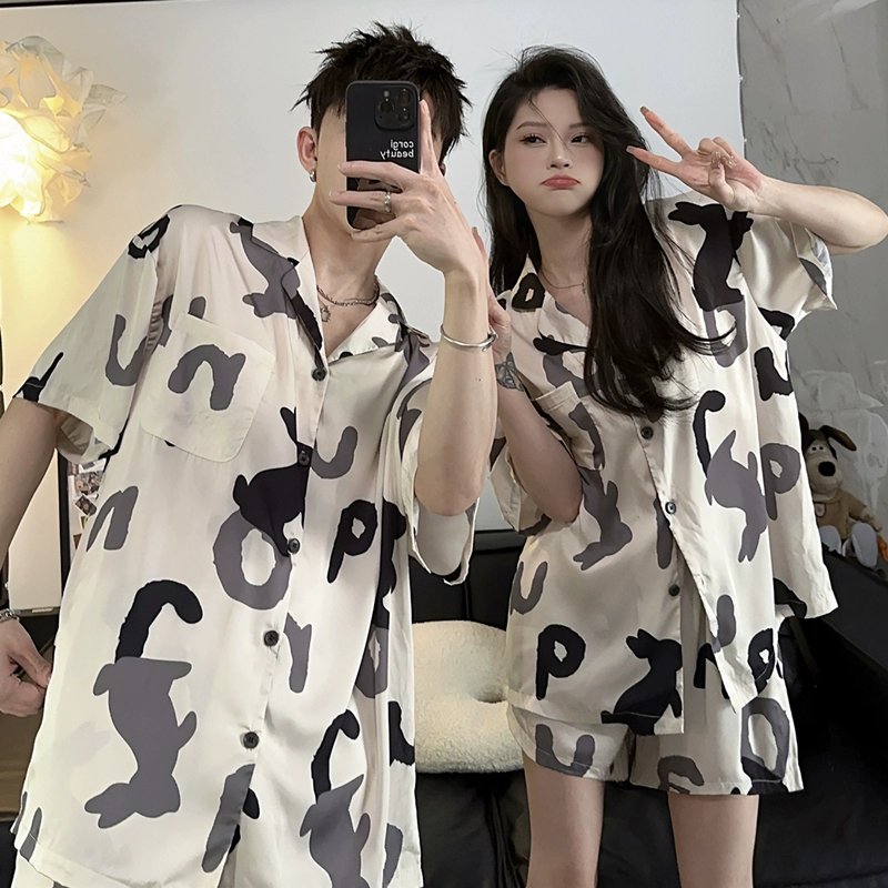 ملابس منزلية للزوجين بيجامة حريرية مقلدة للنساء