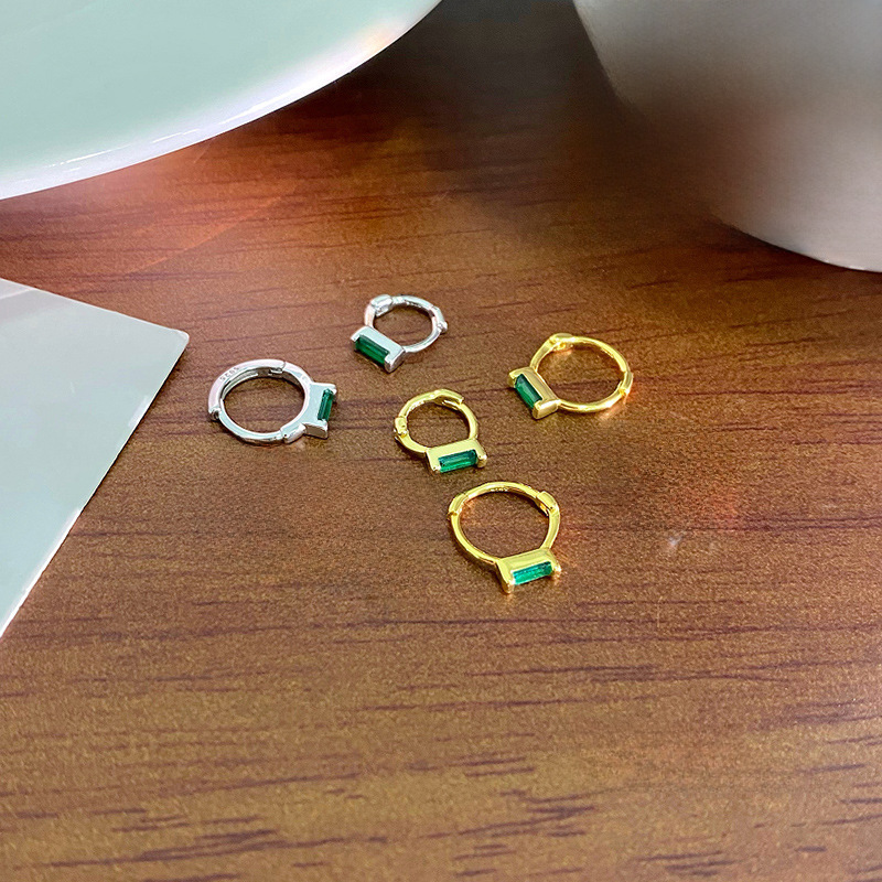 أقراط من Ganjia S925 مصنوعة من الفضة المربعة باللون الأخضر والزركون للسيدات أقراط بتصميم بسيط ومزاجية على الإنترنت للمشاهير على الطراز البارد