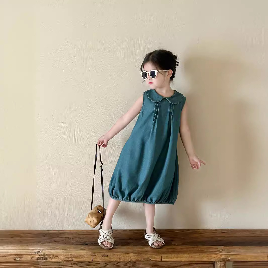 ملابس الأطفال الفتيات الصيف الجديدة الكورية نمط تنورة دمية طوق الدنيم اللباس الأطفال سترة تنورة فانوس