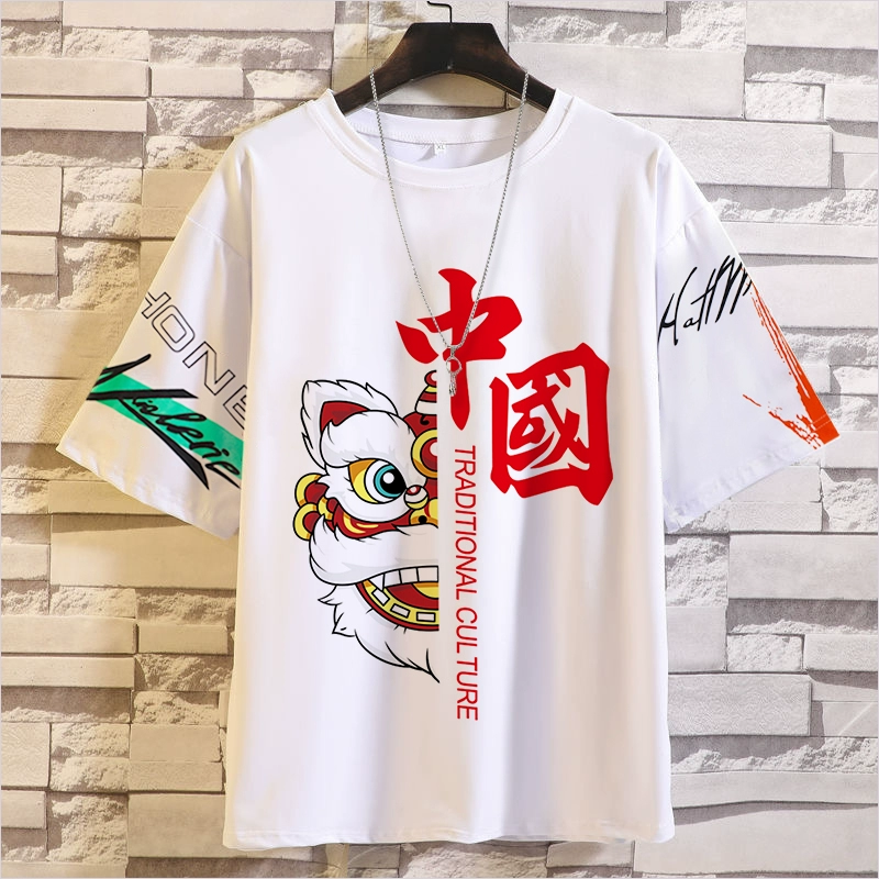 الأسلوب الصيني للرجال الأطراز الصيني من خمس نقاط تي شيرت كبير الحجم