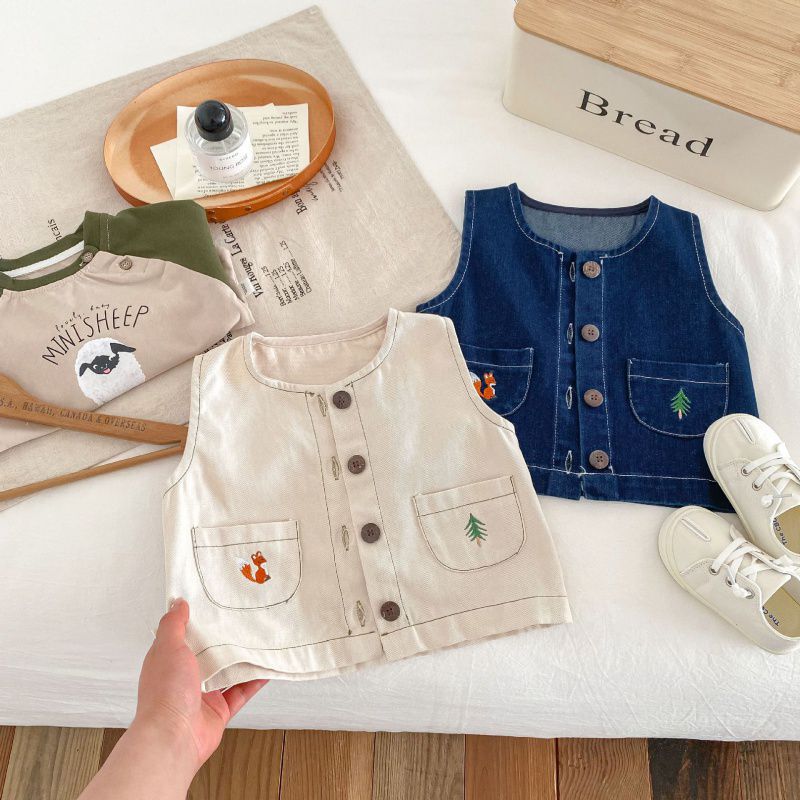 صدرية أطفال من الدنيم بعمر 0-5 سنوات للربيع من Huzhou Zhili للأولاد على الطراز الأجنبي مطرزة موضة ربيع الطفل AY253
