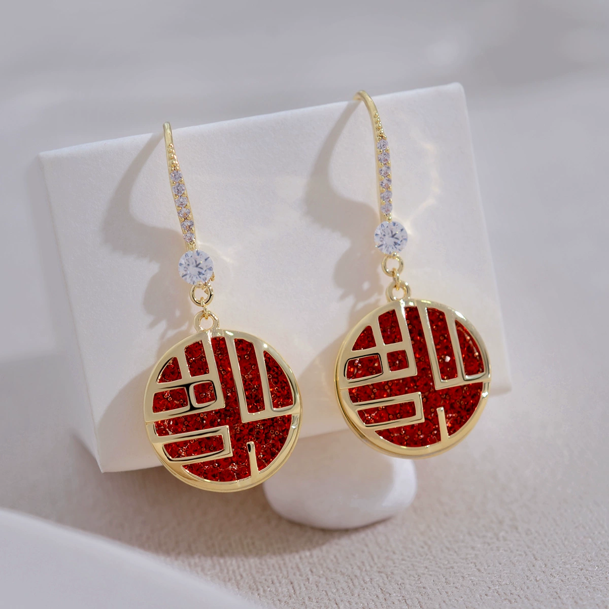 أقراط تصميم السنة الجديدة للنساء أقراط كلمة فو حمراء مع أقراط أذن ماسية أقراط زفاف 2024 اتجاه جديد