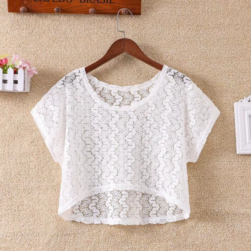 2024 صيف جديد الكروشيه الجوف قصيرة الأكمام قميص المرأة نفخة الأكمام البلوز البنطال القصير العصرية