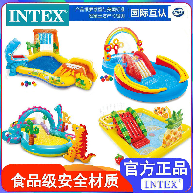 INTEX57161 الأصلي للأطفال نفخ اللعب بركة الصيف اللعب رذاذ الماء الشريحة تجمع الكرتون نمط بركة