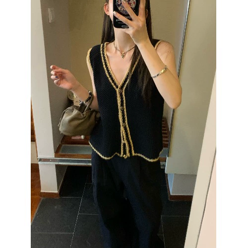 Xiaoxiangfeng kumikumi سترة قصيرة بلا أكمام بألوان متباينة