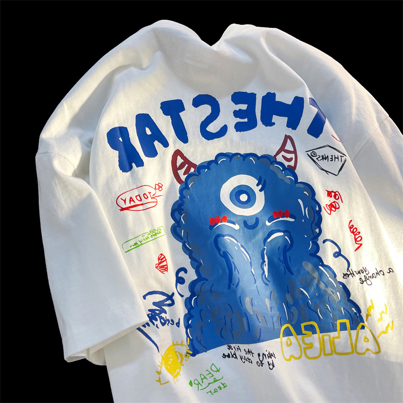 اليابانية الرجعية الكرتون الوحش زوجين قاع قميص Harajuku bf نمط العلامة التجارية العصرية تصميم عادية قصيرة الأكمام تي شيرت للنساء