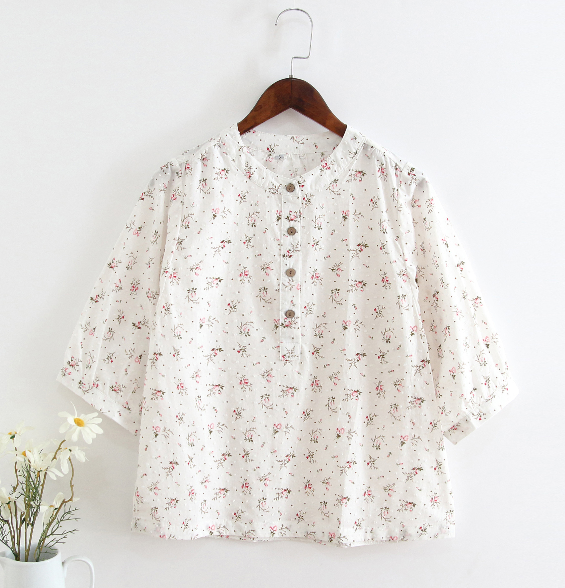 لقطة حقيقية 2024 قميص حريري صيفي متوسط الأكمام المرأة مطرز مطرز حجم كبير الحد من العمر النمط الغربي كل مباراة قميص صغير