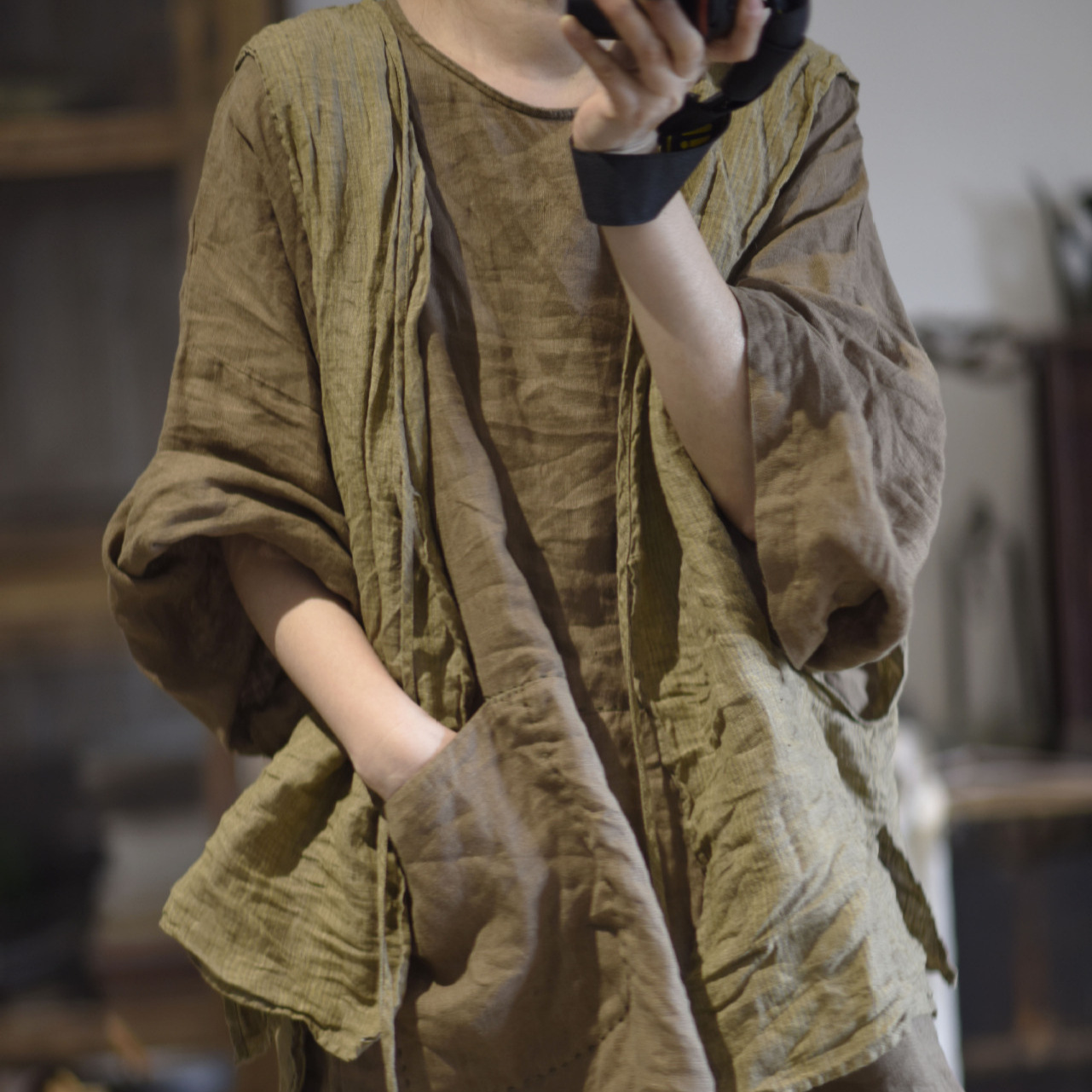 23/3 الأدب الربيع والصيف الرجعية مصبوغ الغزل مخطط الكتان سترة الدانتيل يرتدي سترة