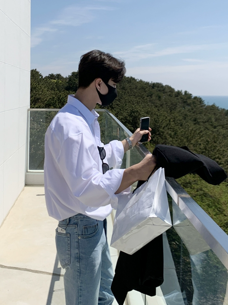 قميص أبيض كوري طويل الأكمام فاتح الأكمام