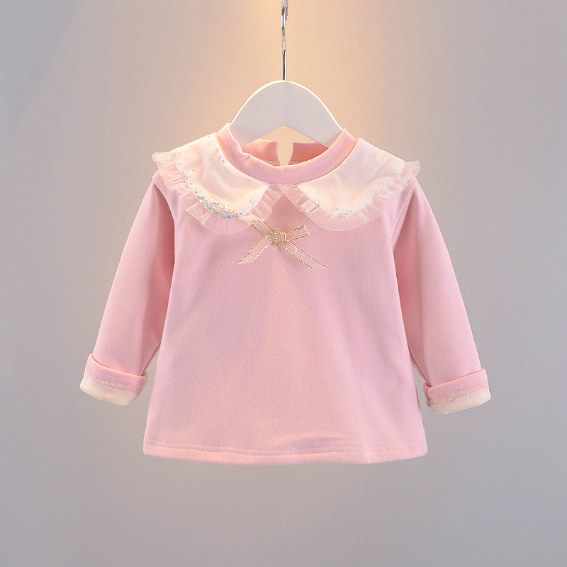 قميص الفتيات الحلو الأساسي 2024 قميص شتاء جديد للأطفال على الطراز الغربي مبطن بالصوف قميص داخلي سميك للنساء قميص قاعدة الكنز