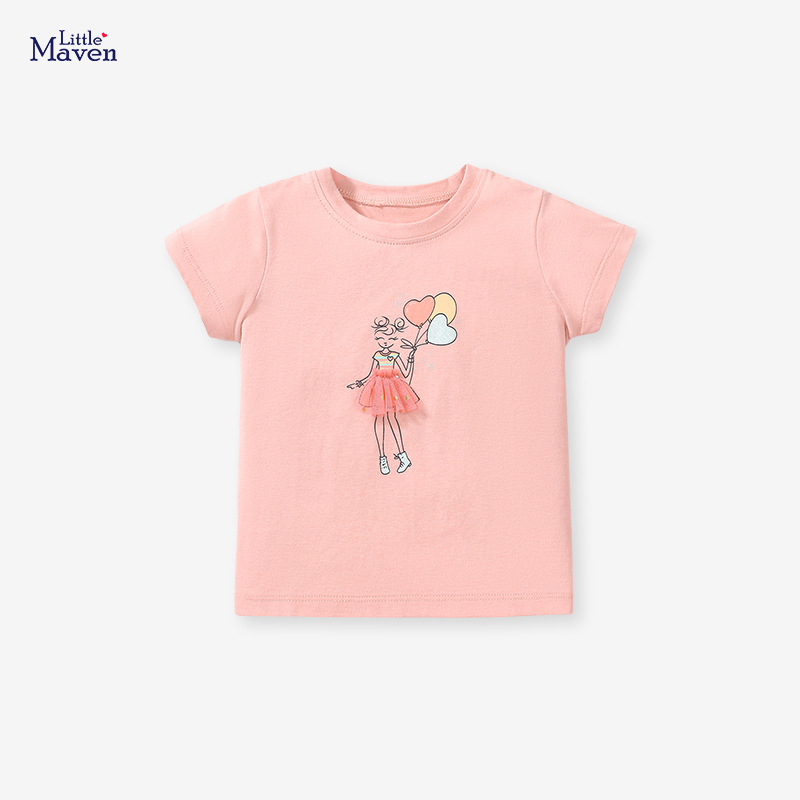 Little maven صيف جديد للأطفال قصيرة الأكمام تي شيرت القطن الفتيات شبكة قميص مطبوع ملابس الأطفال الأوروبية والأمريكية