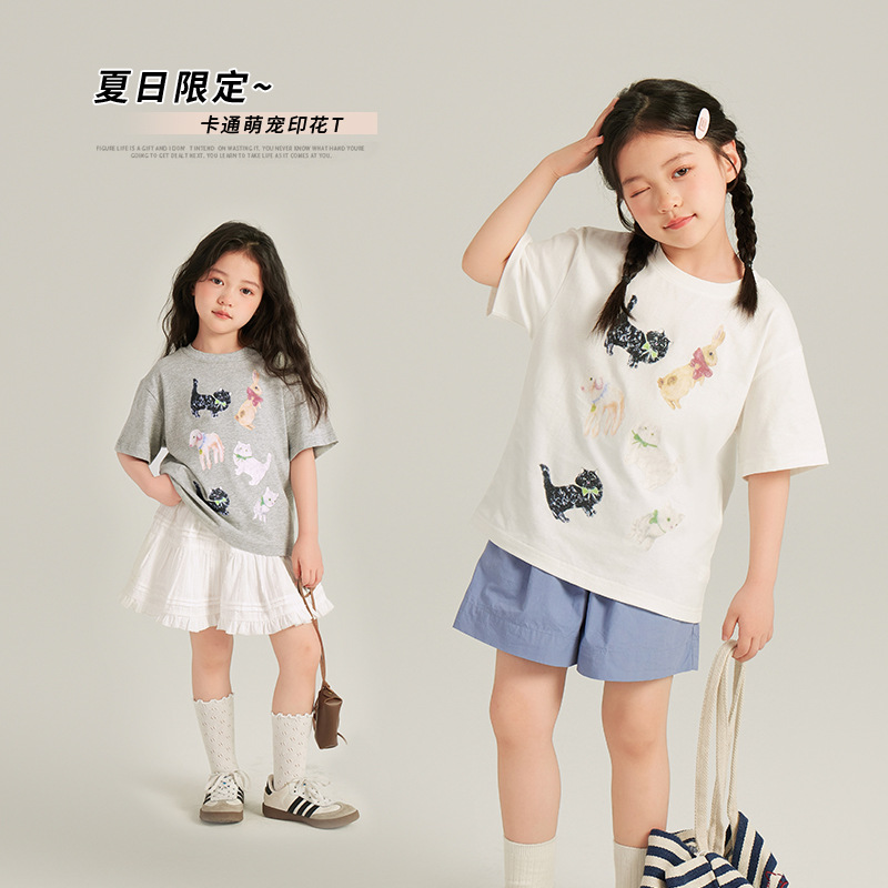 الأطفال كسول الإنترنت المشاهير الكرتون الحيوان تي شيرت مطبوع فضفاض عادية كل مباراة قصيرة الأكمام للبنين والبنات