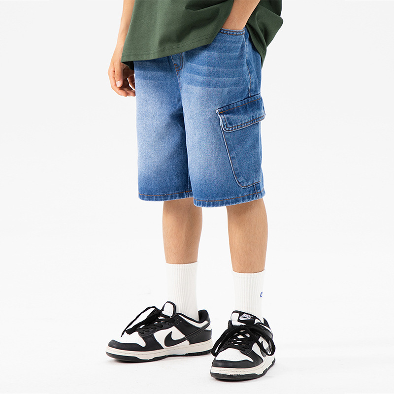 DK ملابس أطفال 24 صيف جديد النمط الياباني الأولاد الأدوات الدنيم السراويل المتوسطة والكبيرة للأطفال عادية متعددة حقيبة السراويل