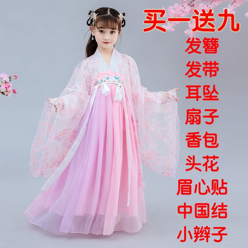 زي أطفال صيفي للفتيات من Hanfu فستان على الطراز الصيني تنورة على الطراز القديم لطلاب المدارس الابتدائية زي قديم جديد