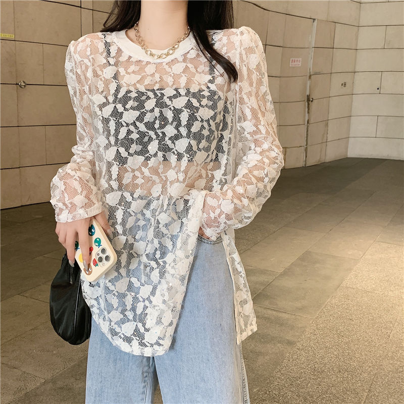 في صيف عام 2024، قميص واقي من الشمس نقي شبكي نقي الطراز الجديد برقبة دائرية وبلوزة طويلة من الدانتيل المنقسم على الطراز الأجنبي