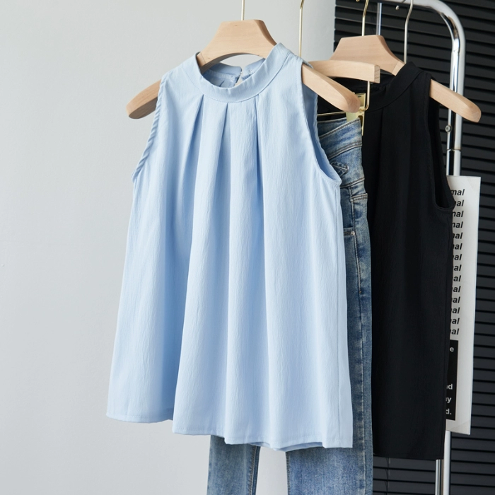 تصميم بلا أكمام التصميم الفضفاضة قميص فتاة الساخنة معلقة الرقبة