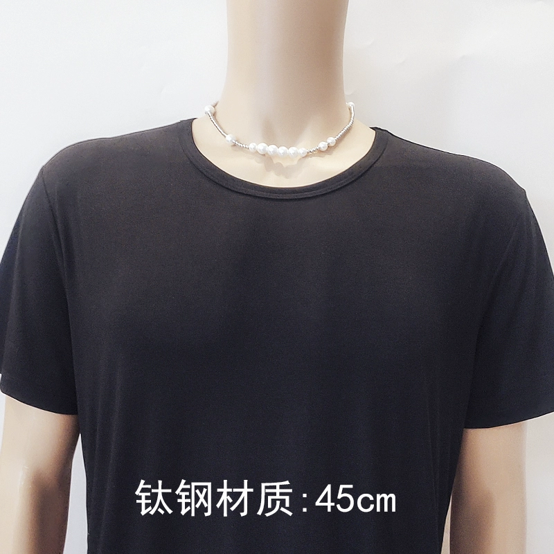 قلادة اللؤلؤ ذات النمط نفسه من Wang Yibo للرجال العصريين، الهيب هوب، الهيب هوب، سلسلة الترقوة من الفولاذ التيتانيوم، سلسلة سترة زوجين متعددة الاستخدامات، قلادة للنساء