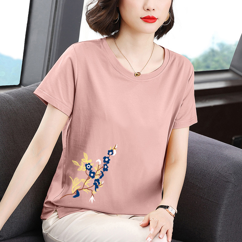 القطن تي شيرت المرأة الأم قصيرة الأكمام الصيف فضفاض التخسيس جديد منتصف العمر المرأة المرأة قمة عصرية أنيقة