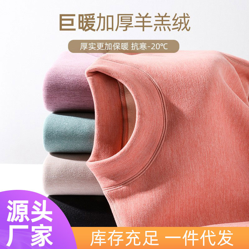 ملابس داخلية حرارية متوسطة الياقة تناسب المرأة البربرية الصوف السميك قطعة واحدة مخملية مقاس كبير ملابس الخريف مقاومة للبرودة قاعدة داخلية علوية للشتاء