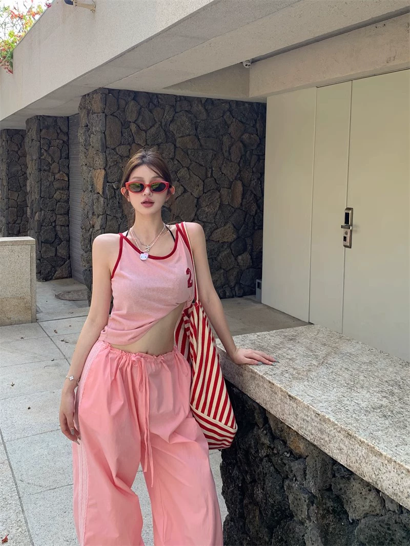 حزام الحمالة بدون أكمام بطباعة حروف وردية