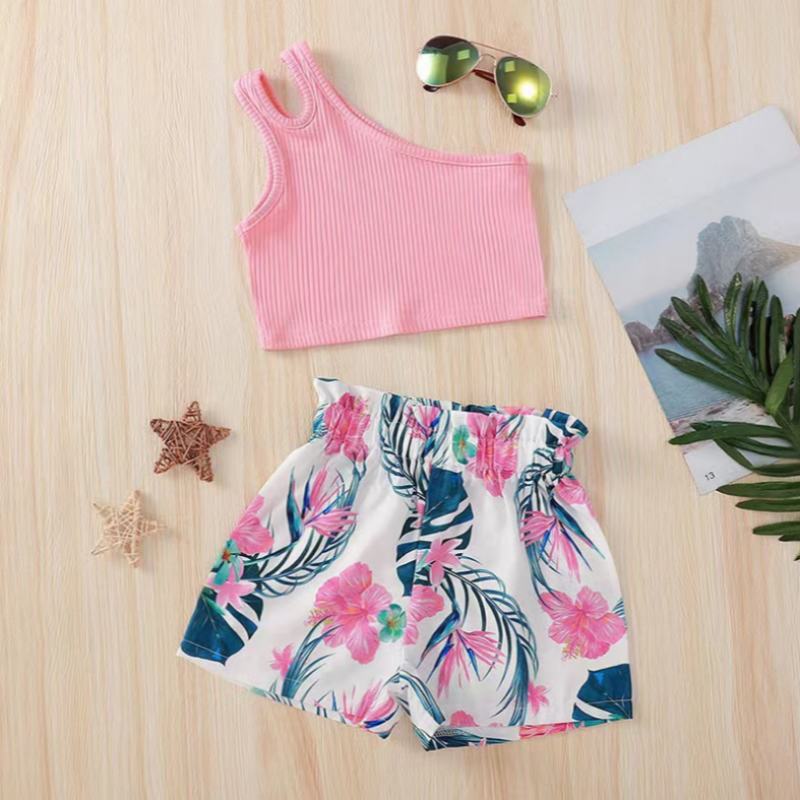 طقم شورت صيفي أنيق للفتيات الصغيرات مكون من قطعتين