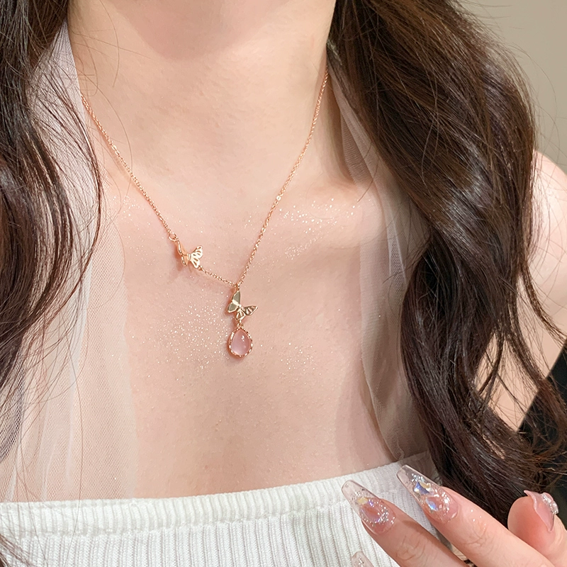 قلادة من الفضة والمجوهرات قلادة على شكل فراشة من الكريستال الوردي