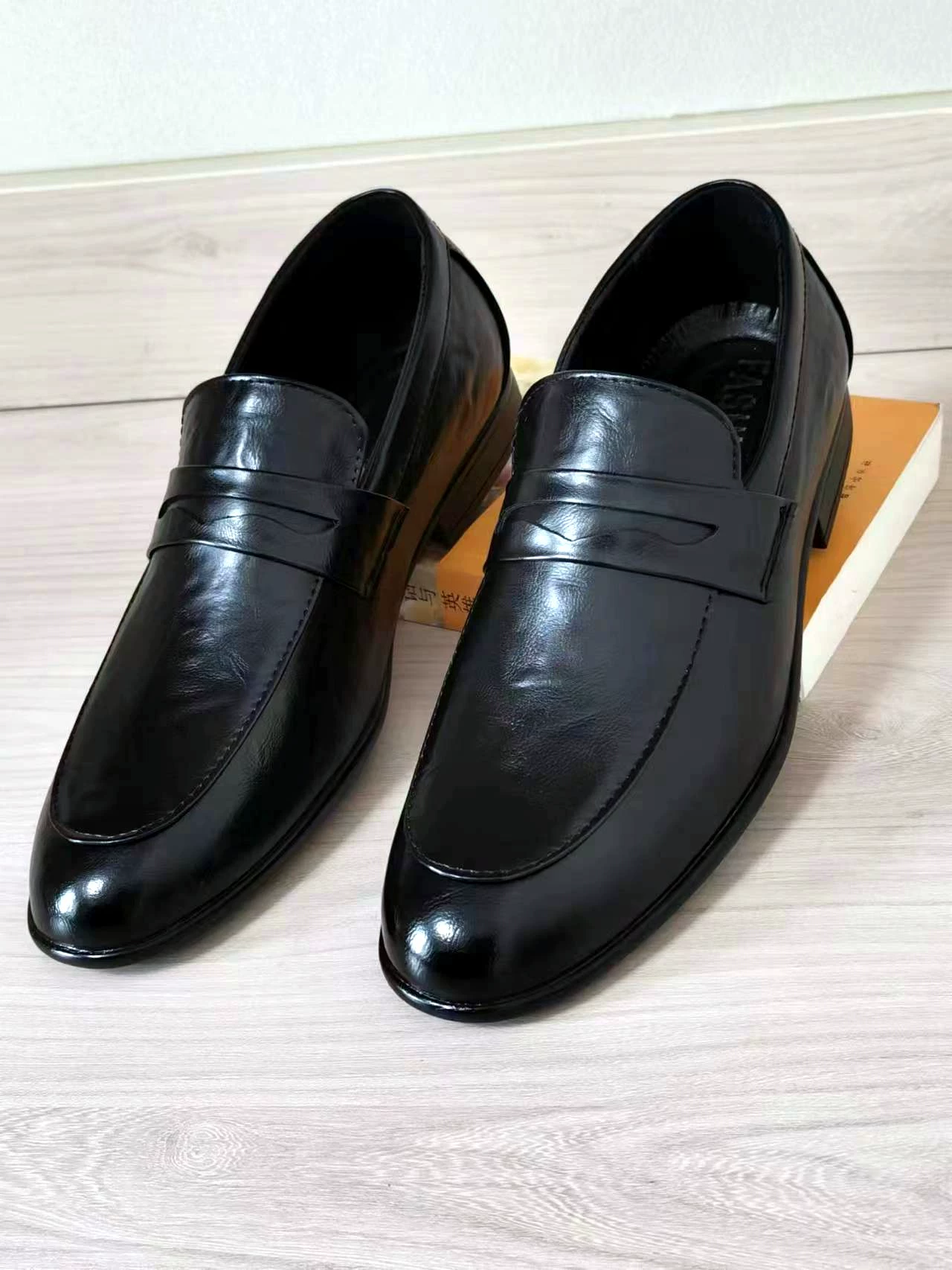 حذاء عصري من الجلد الطبيعي للطالب الشاب البريطاني حذاء كاجوال للأعمال سهل الارتداء من الجلد حذاء رجالي بمقدمة مدببة سهل الارتداء