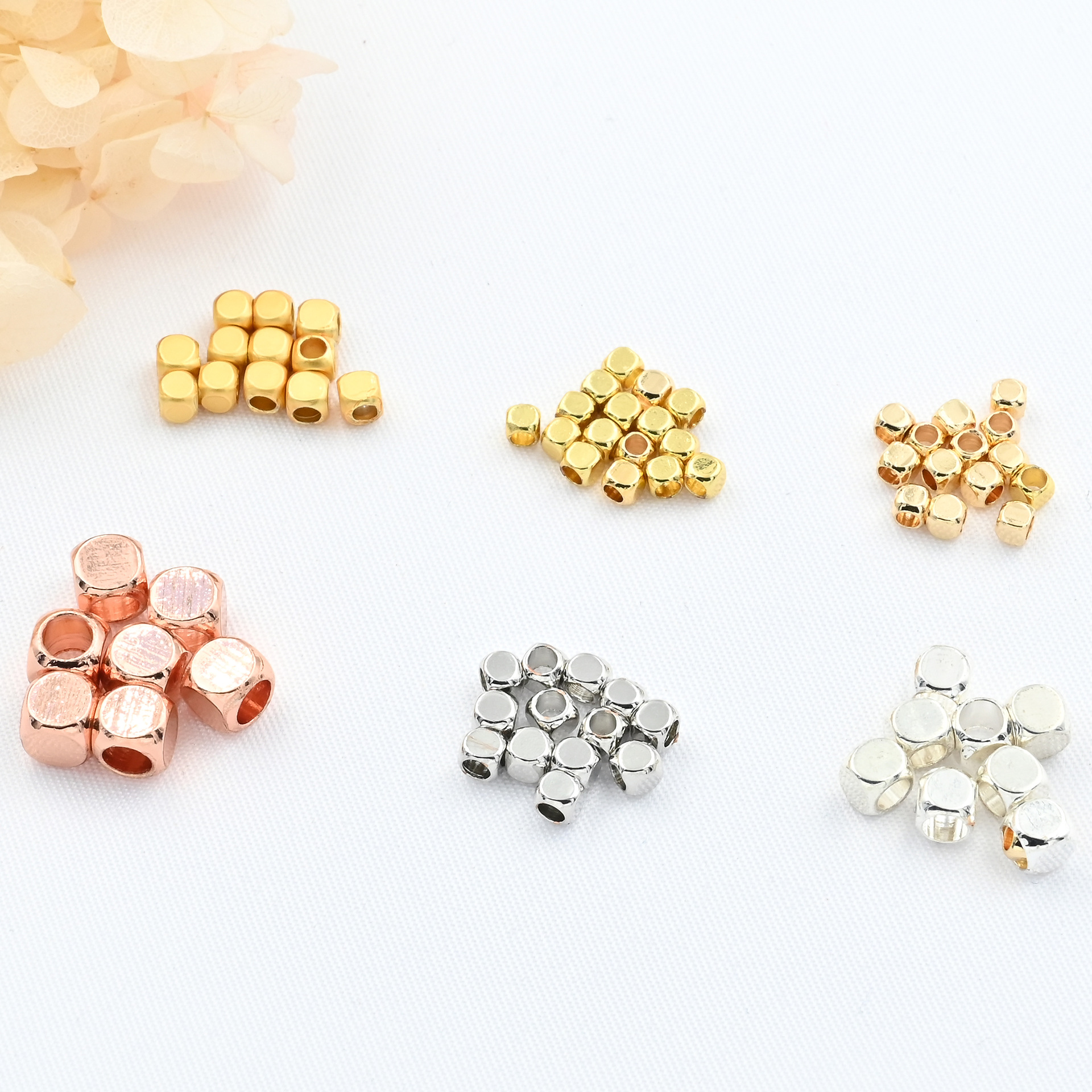 خرز مربع يحتفظ باللون الذهبي عيار 14 قيراط، مادة فاصلة، خرز فضفاض صلب ناعم، مجوهرات ذاتية الصنع، إكسسوارات مطرزة يدويًا