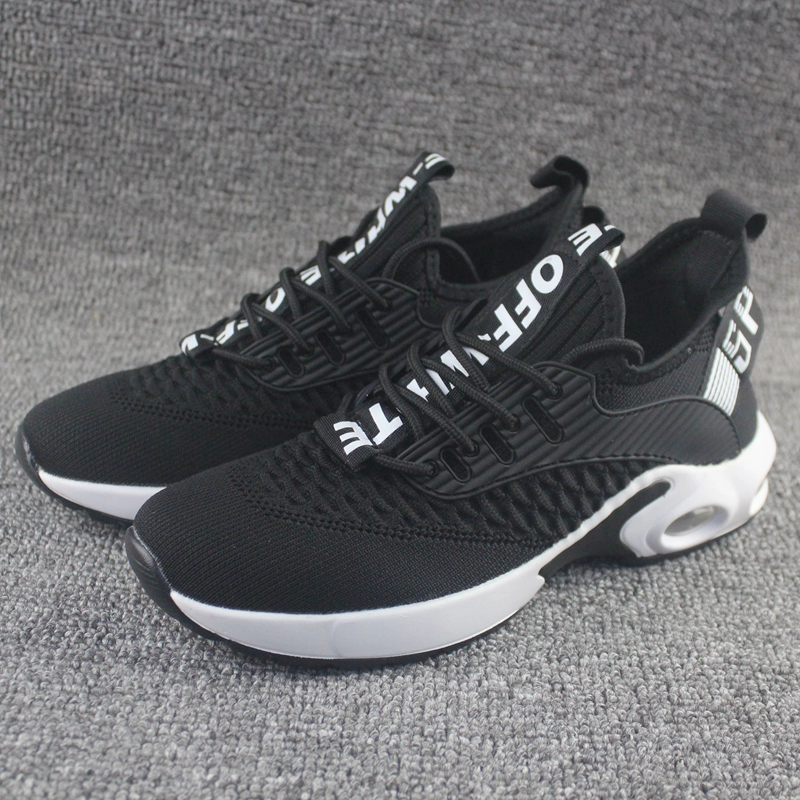 أحذية رياضية أبيض وأسود قابلة للتنفس للرجال الشبكة الطيران العصرية وتنوعا وسادة الهواء غير الرسمية