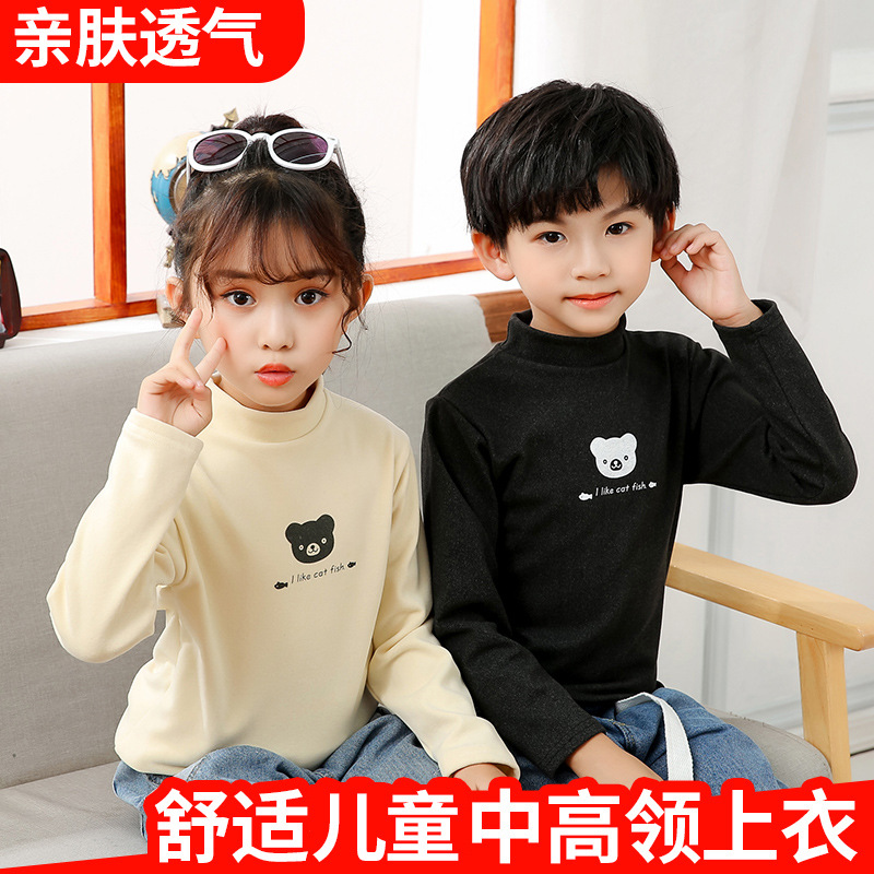 ملابس ذات ياقة عالية متوسطة للأطفال، سترة دافئة للأطفال للأولاد والبنات، قميص سفلي برسوم كارتونية، ملابس خارجية متوسطة السُمك للخريف والشتاء