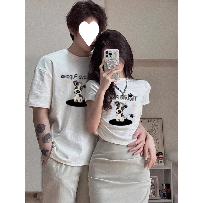 [250 جرام غزل مزدوج -220 جرام ممشط] فستان زوجين فريد من نوعه من القطن الخالص فستان صيفي أنيق خاص بأكمام قصيرة تي شيرت