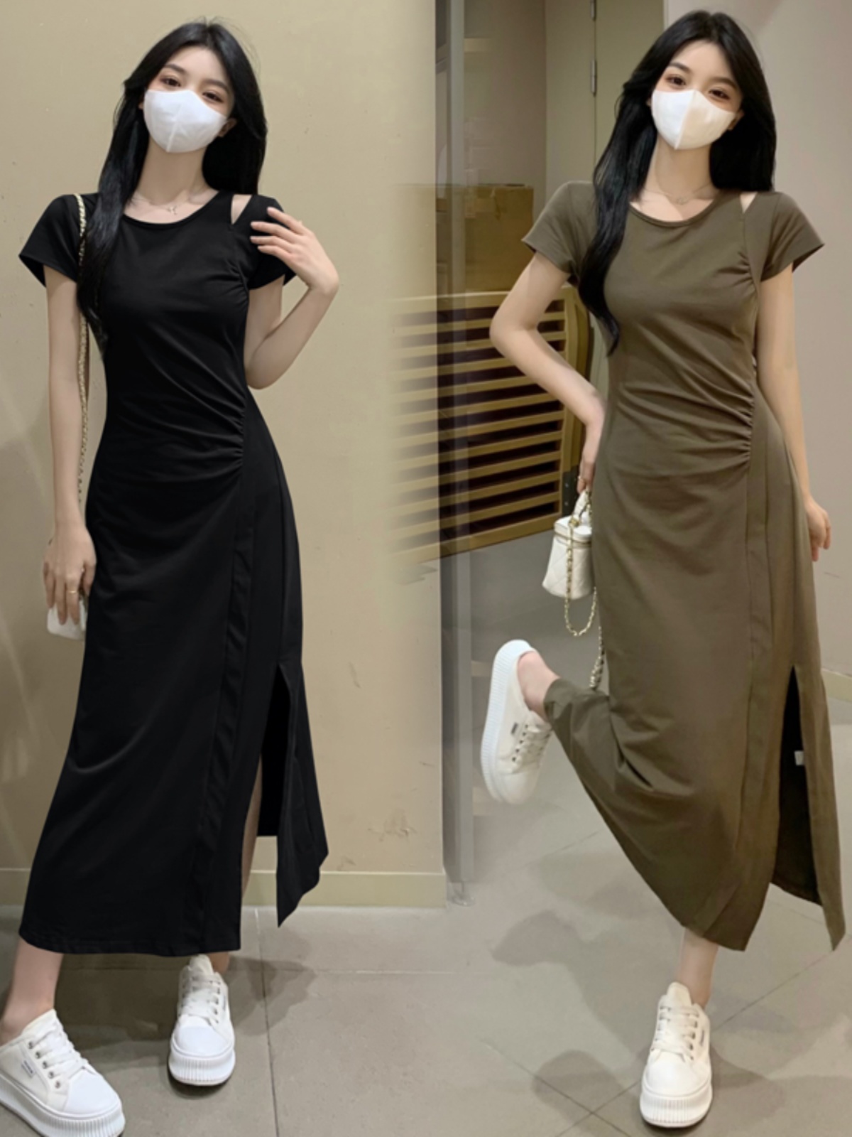 الرجعية الصيف فتاة الدهون تصميم فستان شق