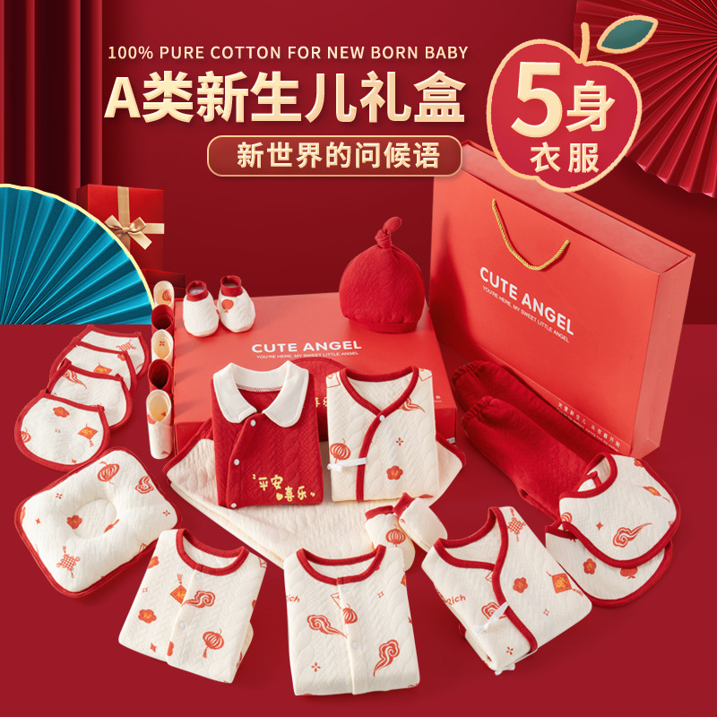 صندوق هدايا لملابس الأطفال حديثي الولادة مجموعة لوازم الخريف والشتاء لحديثي الولادة هدية اجتماع البدر الراقية