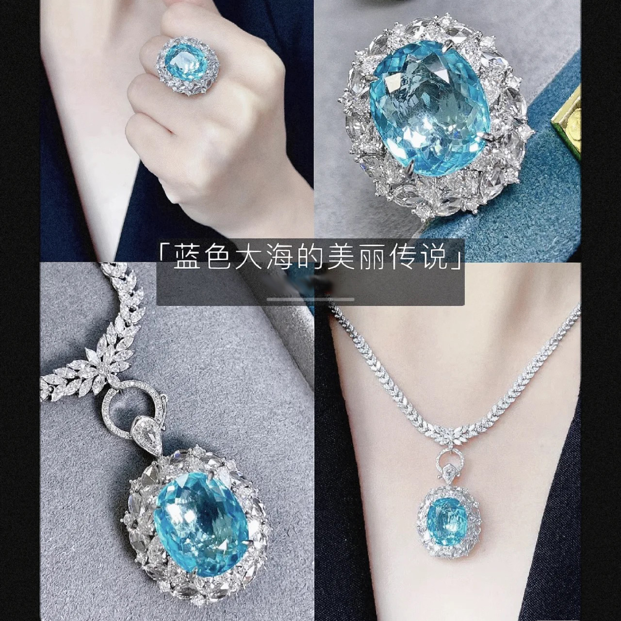 مجموعة أقراط كايباو الفاخرة من قلادة الزبرجد الراقية من أسطورة البحر الأزرق الجميلة للنساء