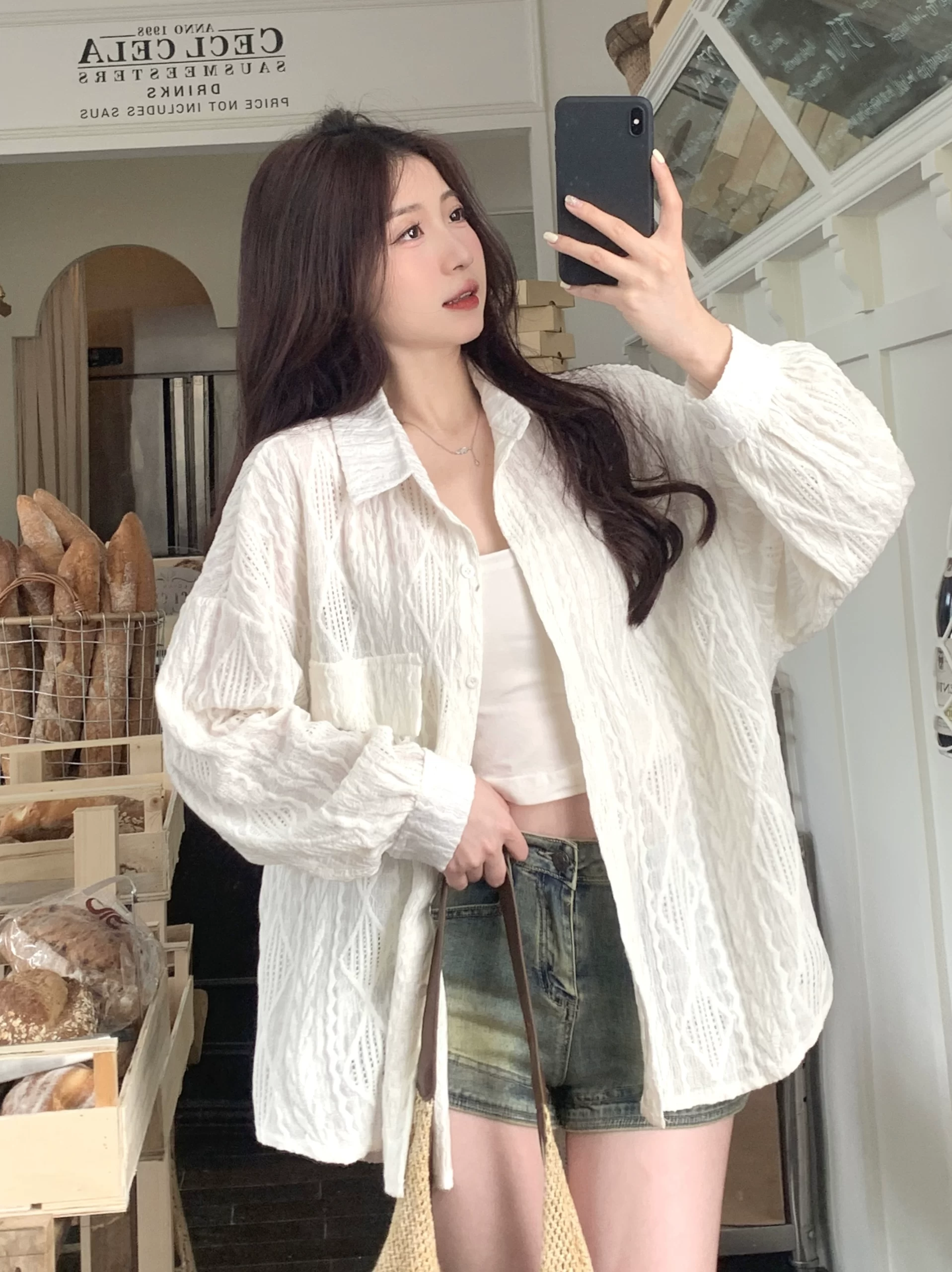 الفرنسية ايوسل قميص بأكمام طويلة المرأة الربيع والصيف تصميم جديد تحسس المتخصصة أعلى وهمية قطعتين حزام الشمس واقية قميص سترة