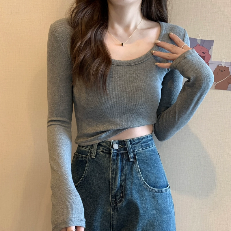 كتف إيجابي متعدد الاستخدامات قاعدة القطن العلوي الطويل -sleeved t -shirt