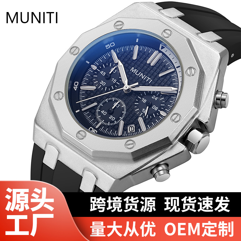 ساعة AP جديدة مع اهتزاز مباشر عبر الحدود ساعة كوارتز رجالية مقاومة للماء مضيئة رويال أوك ثلاث عيون ستة