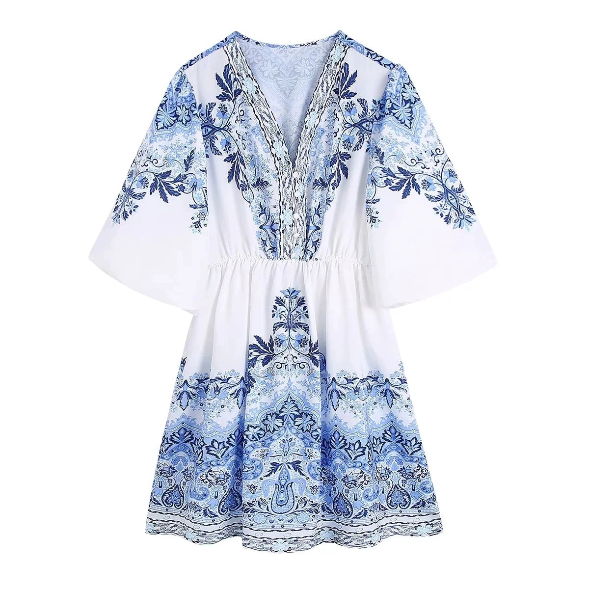 فستان شورت صيفي فضفاض منقوش للفتيات على الطراز الكوري