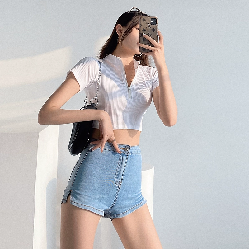 تي شيرت بولو نحيف بسحاب رفيع بأكمام قصيرة