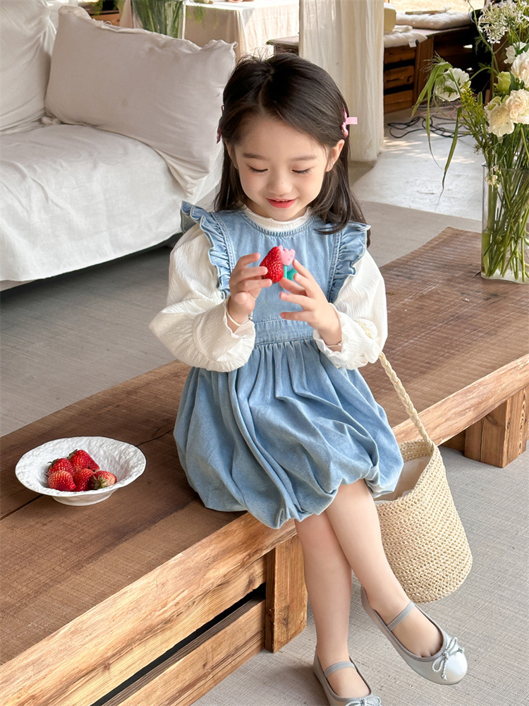 فستان بناتي على الطراز الغربي 2024 تنورة صيفية من قماش الدنيم للأطفال بدون أكمام على طراز موري