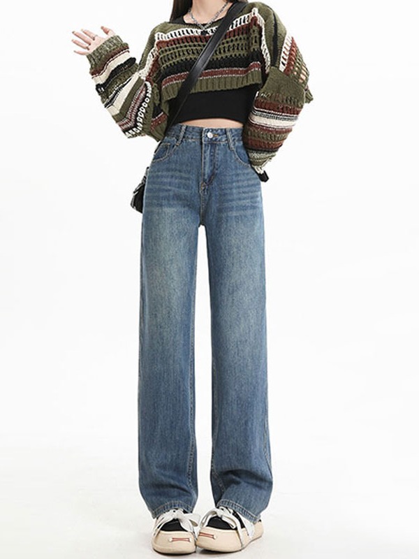 ارتفاع الخصر الجينز الرجعية الجينز الرجعية المرأة ربيع جديد ضيق السراويل واسعة الساق عالية الخصر السراويل ممسحة مستقيمة