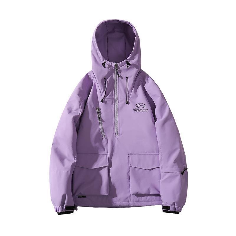سترة تزلج بغطاء للرأس مقاومة للرياح ومقاومة للماء في الهواء الطلق بدلة تزلج من القطن وسترة سميكة مبطنة بالقطن وسترة للزوجين