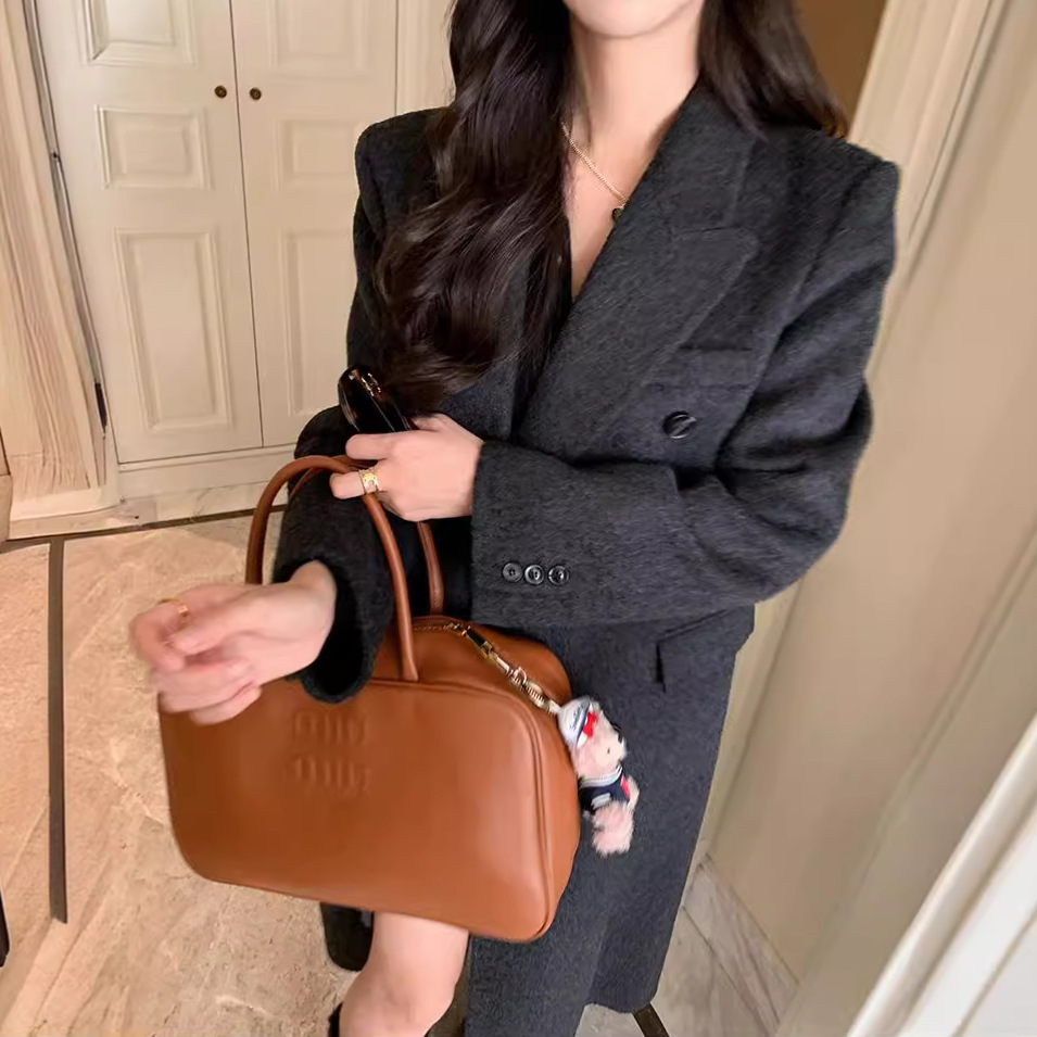 معطف صوف مزدوج الجوانب مخيط يدويًا ضد الموسم من Second Kill معطف صوف متوسط الطول للسيدات أنيق فضفاض للتخسيس