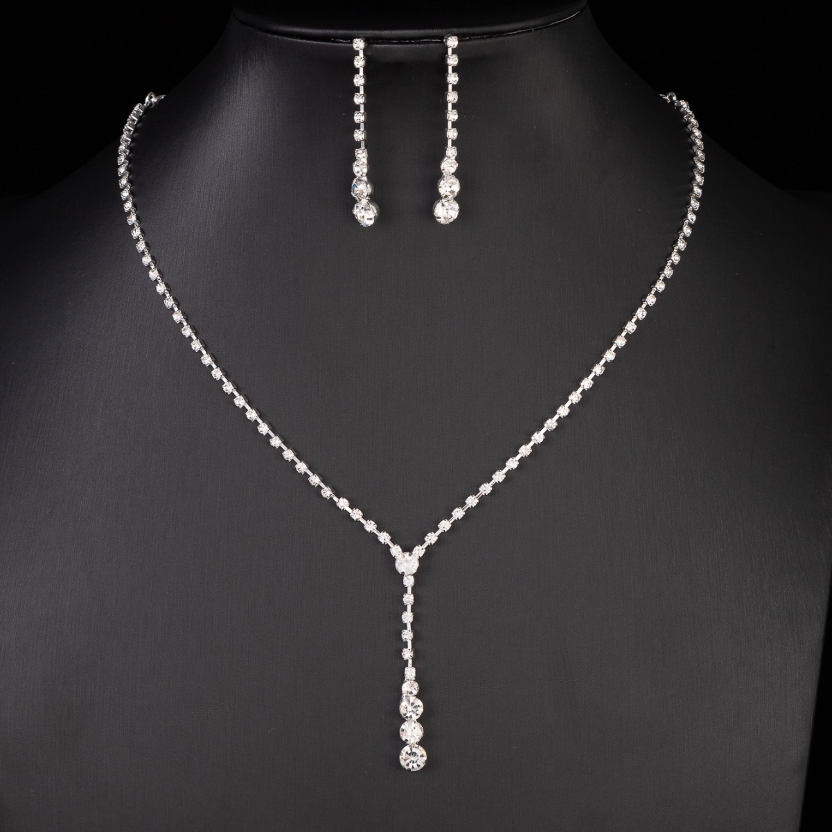 أزياء الجوكر بسيطة حجر الراين سلسلة الترقوة قلادة أقراط مجوهرات تناسب المرأة فستان الزفاف اكسسوارات مجموعة سلسلة